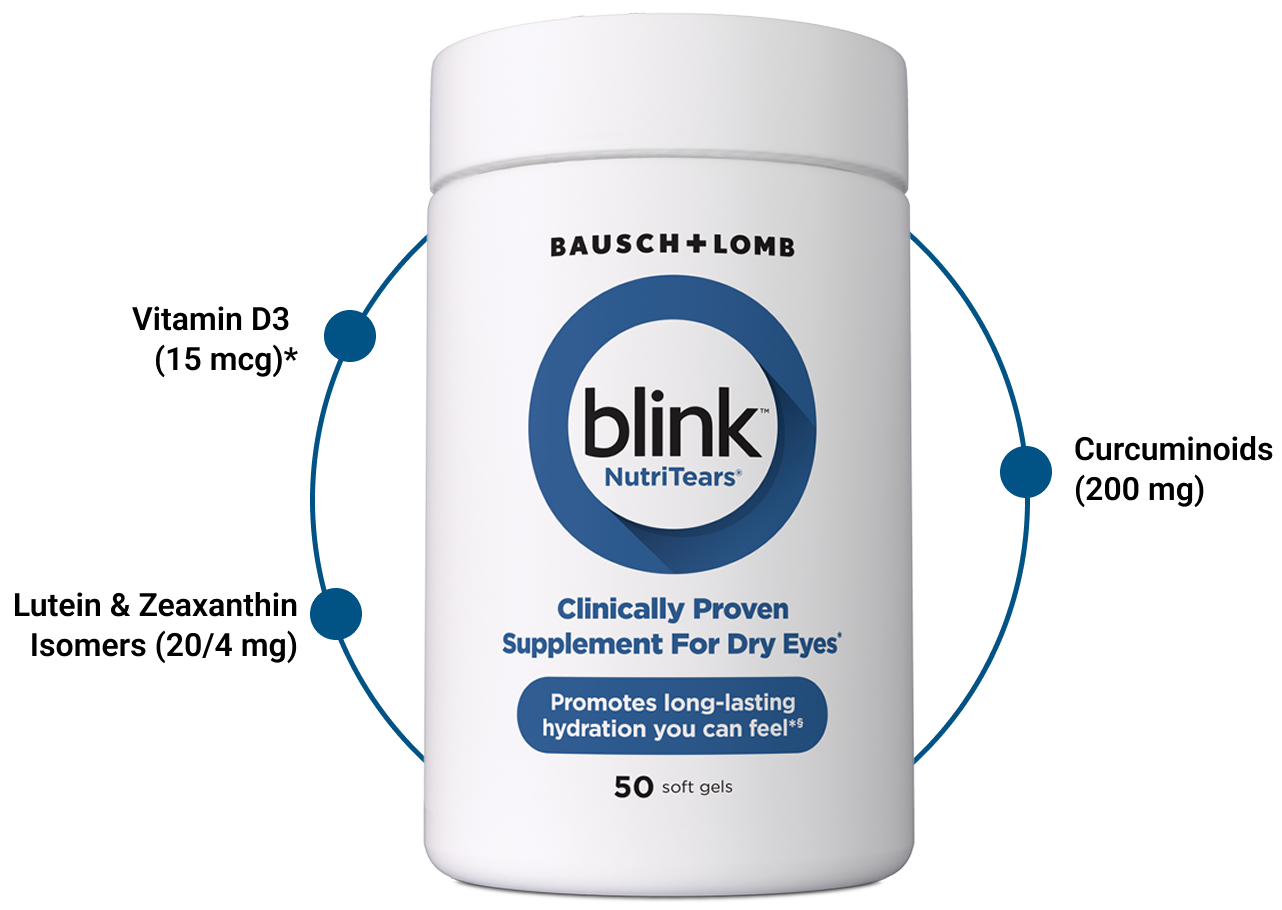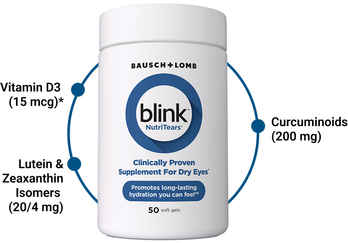 Lutein, zeaxanthin, curcumin, and vitamin D3 have demonstrated protective and anti-inflammatory properties in ocular models. Clinical studies showed that BlinkTM NutriTears® improves symptoms of dry eye disease, reduces inflammatory markers and improves corneal and conjunctival staining.
